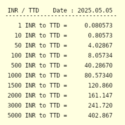 Inr To Ttd Exchange Rate Indian Rupee To Trinidad And Tobago Dollar Conversion